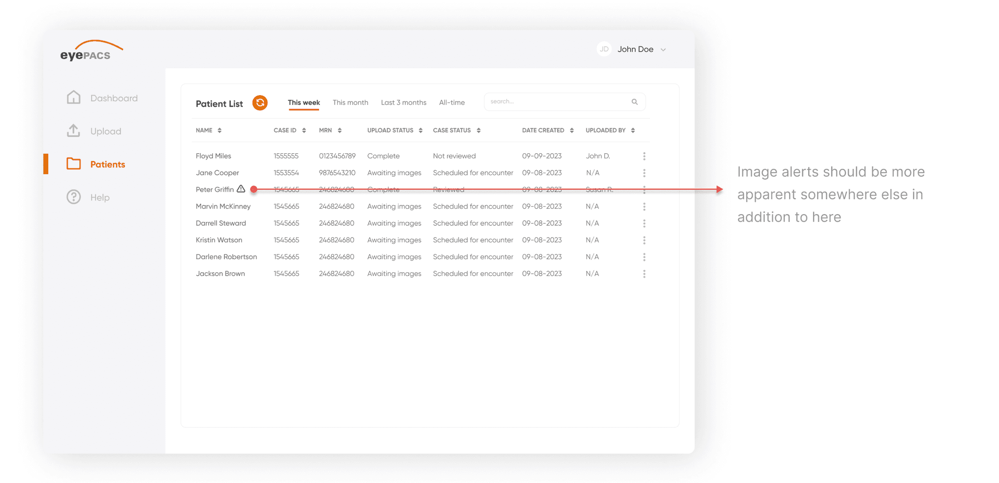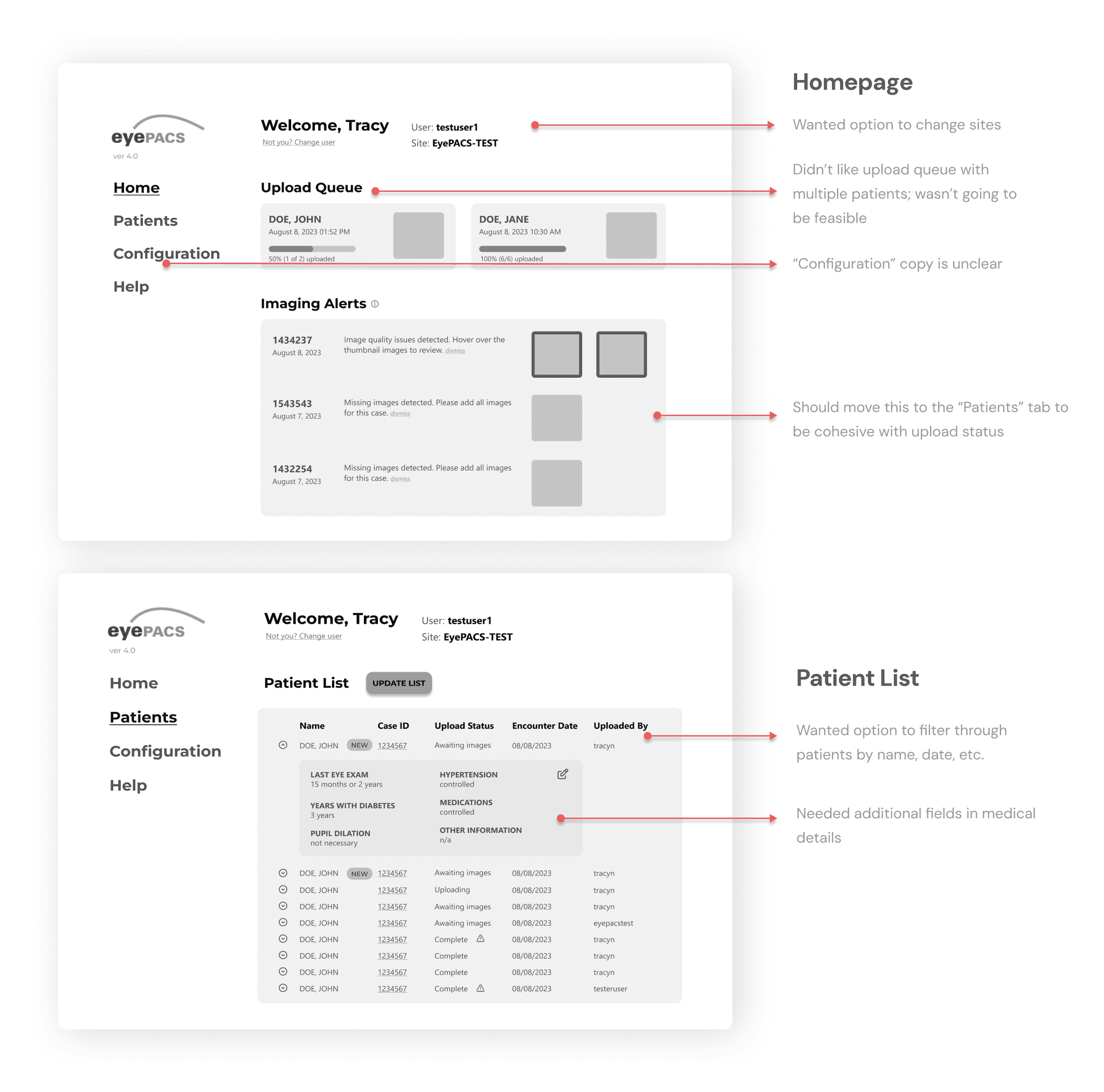 I asked for user feedback from 7 users, with a focus on asking for what they liked, disliked, and what they wanted to see. Most of the feedback was towards the homepage, patient list page, and overall workflow.