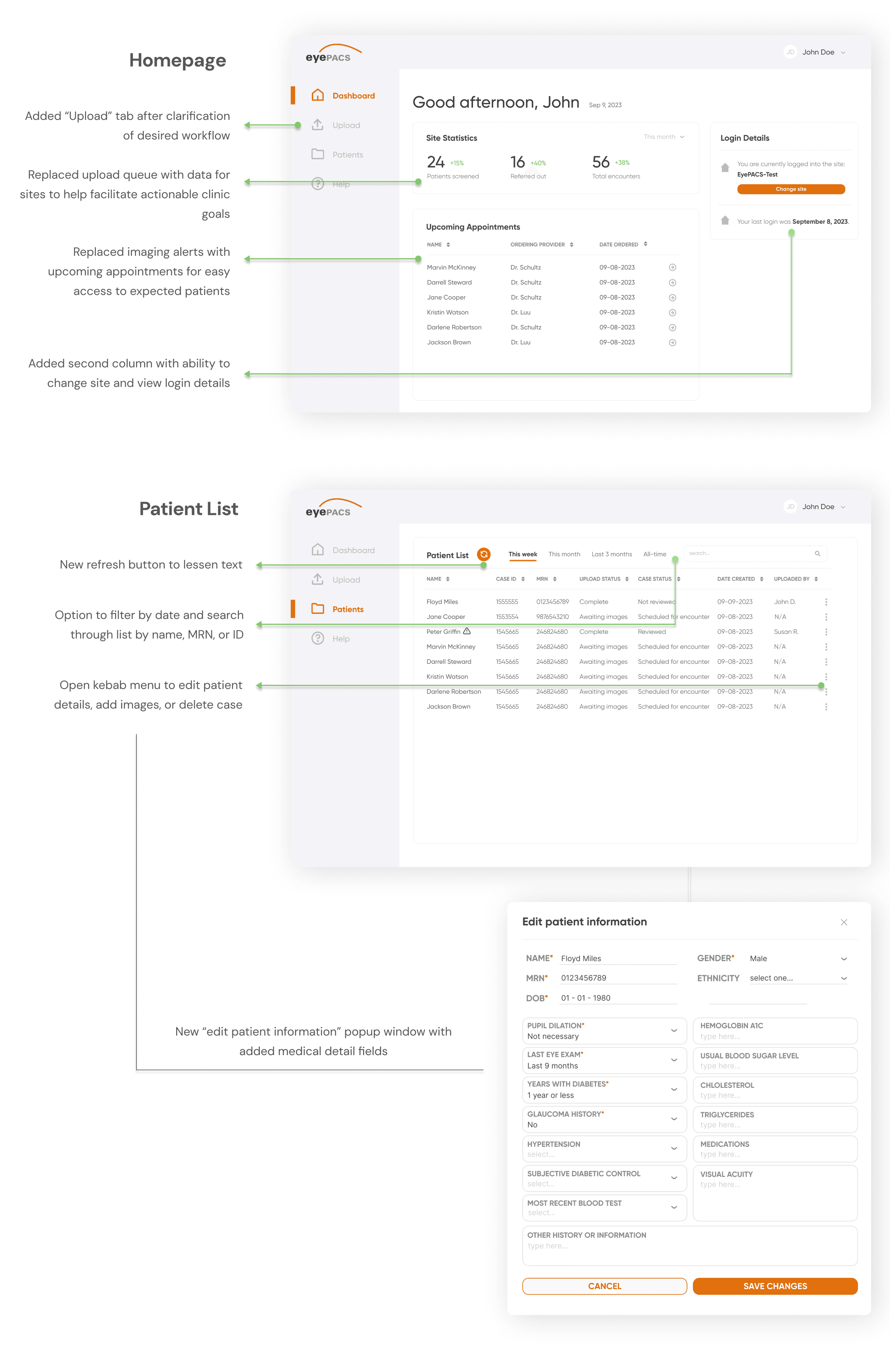 This final prototype was approved by senior stakeholders and engineers for development, following alignment on both the user experience and technical feasibility. The design effectively addressed key user needs and met the projectβs business objectives, which was to streamline the retinal screening process into one efficient platform.
